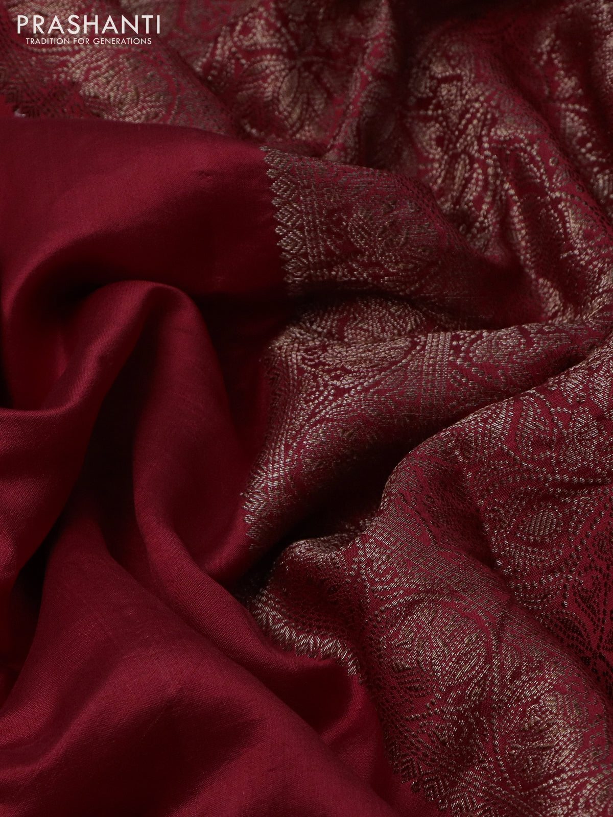 Chiniya silk saree maroon with plain body and woven border