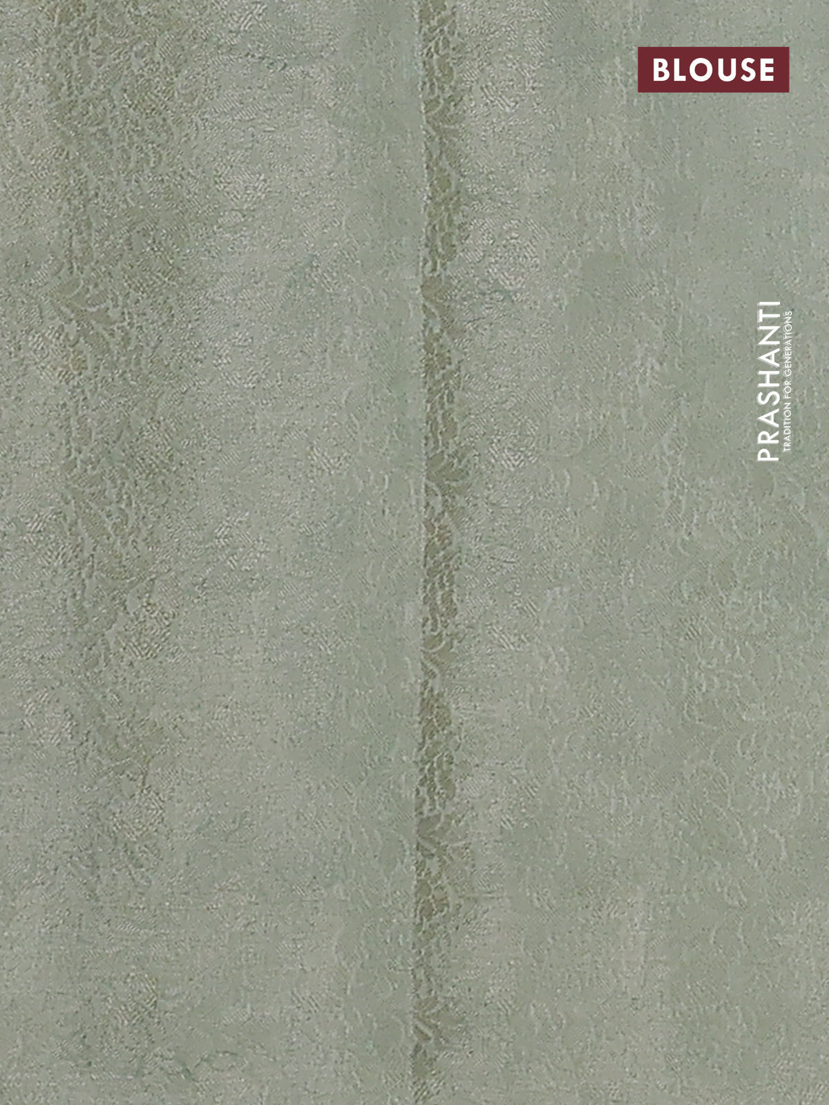 Chiniya silk saree off white and pastel green with allover silver zari buttas & digital prints and zari woven border