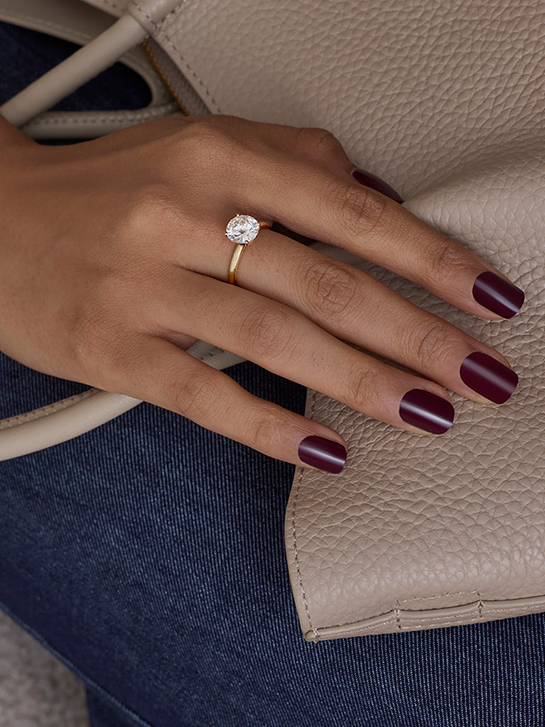 Defined by its clean silhouette and radiant presence, this ring features a brilliant lab-grown solitaire set in a polished gold-vermeil prong mount. The rounded band offers a smooth, elegant contour that draws attention to the stone’s luminous clarity. Designed to feel timeless yet contemporary, it brings a striking sense of refinement to the hand and pairs effortlessly with both everyday pieces and evening ensembles.