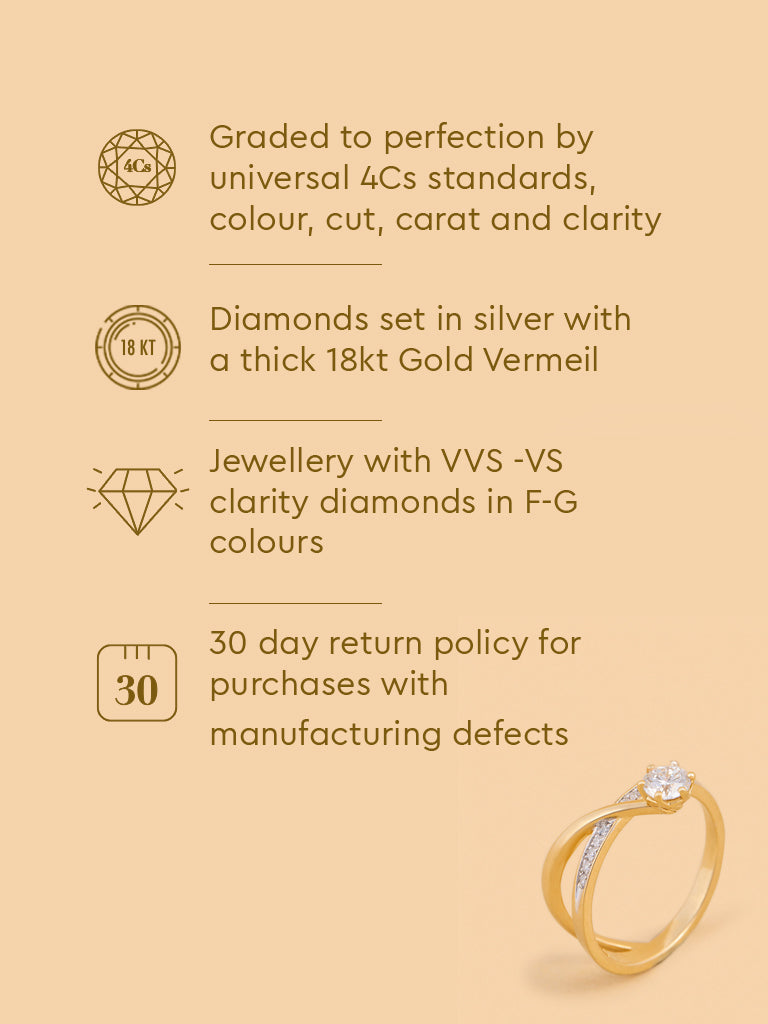 Stand out with this classic comet solitaire lab diamond ring. Made in gold vermeil, it offers a stunning design that is a guaranteed head turner