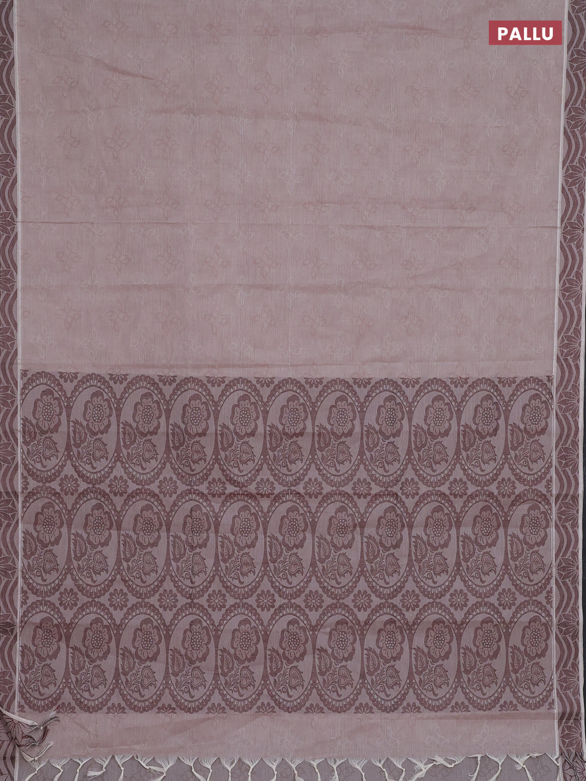 Coimbatore cotton saree beige and coffee brown with allover self emboss and thread woven border
