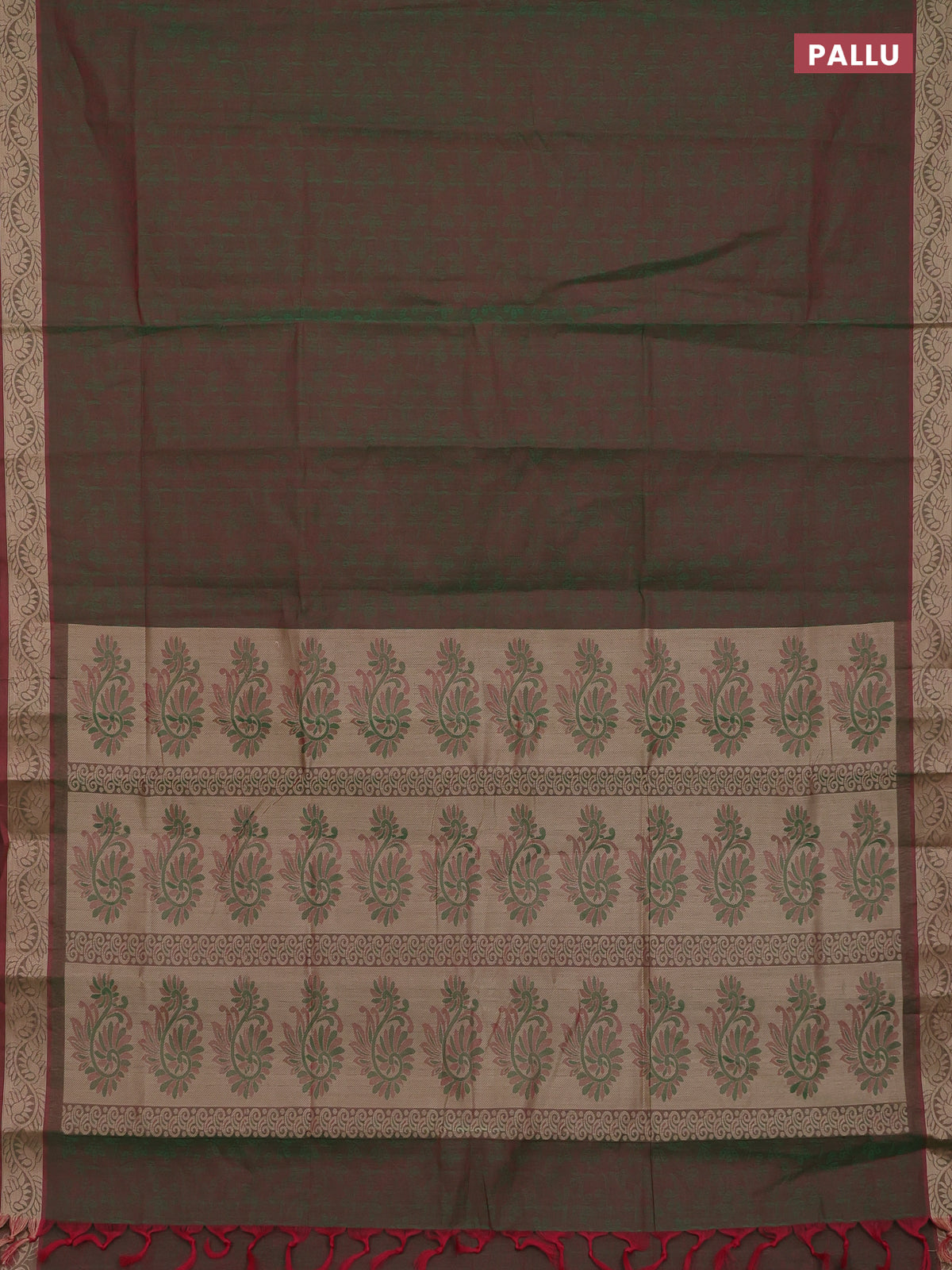 Coimbatore cotton saree dual shade of greenish maroon with allover self emboss and thread woven border