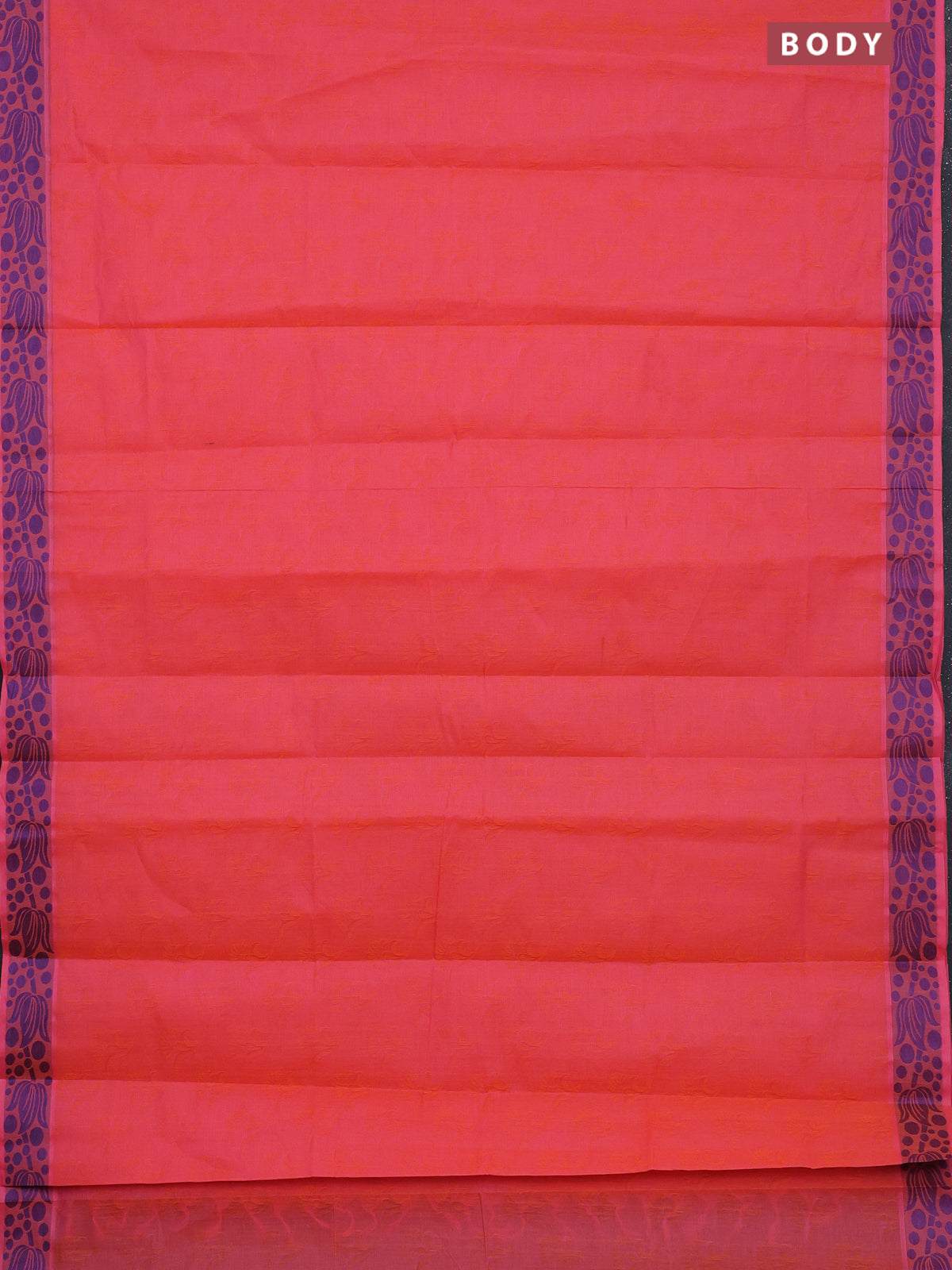 Coimbatore cotton saree dual shade of orange and blue with allover self emboss and thread woven border