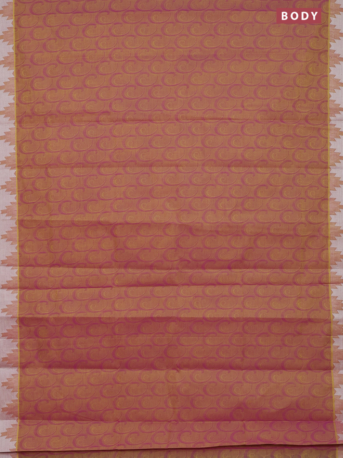 Coimbatore cotton saree dual shade of yellowish purple with allover self emboss and thread woven border