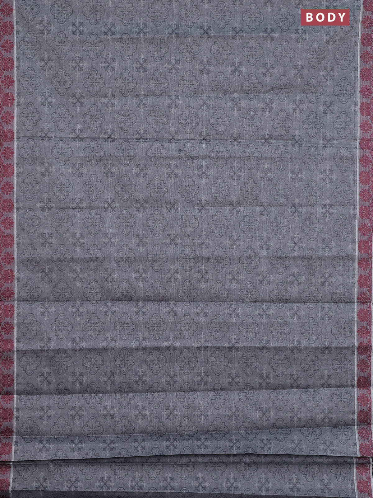 Coimbatore cotton saree grey and maroon with allover self emboss and thread woven border