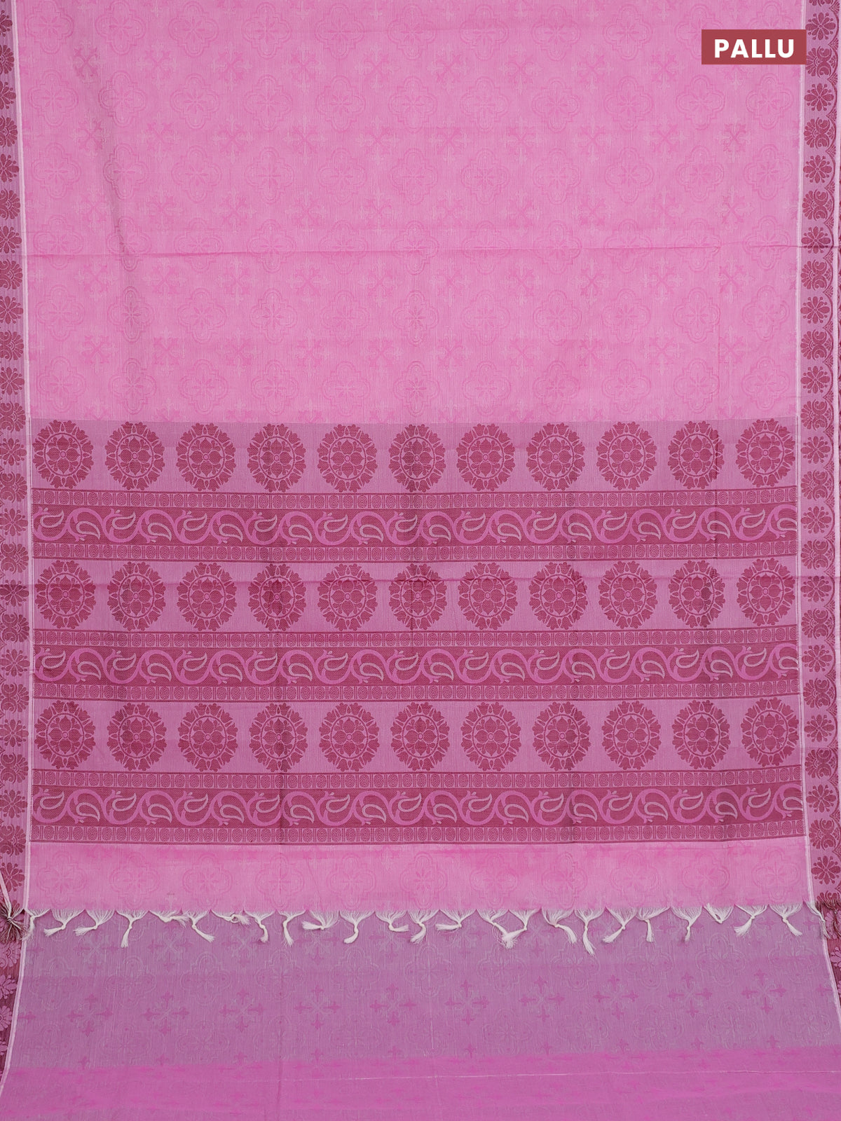 Coimbatore cotton saree light pink and maroon with allover self emboss and thread woven border