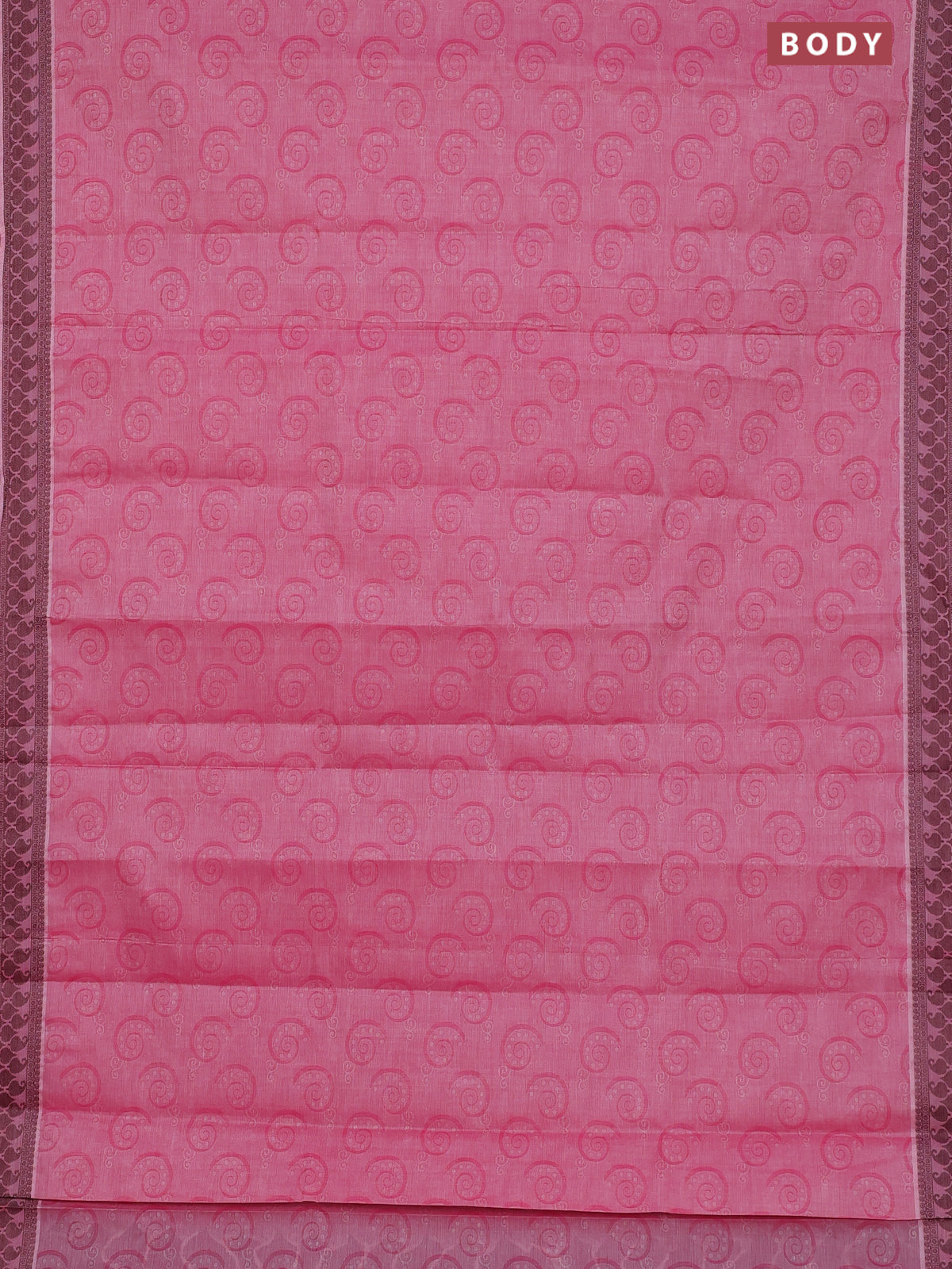 Coimbatore cotton saree pink and coffee brown with allover self emboss and thread woven border