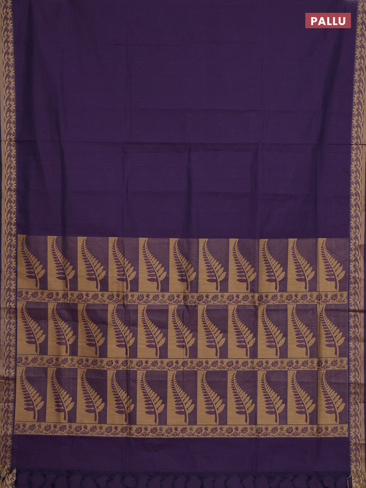Coimbatore cotton saree purple with allover self emboss and thread woven border