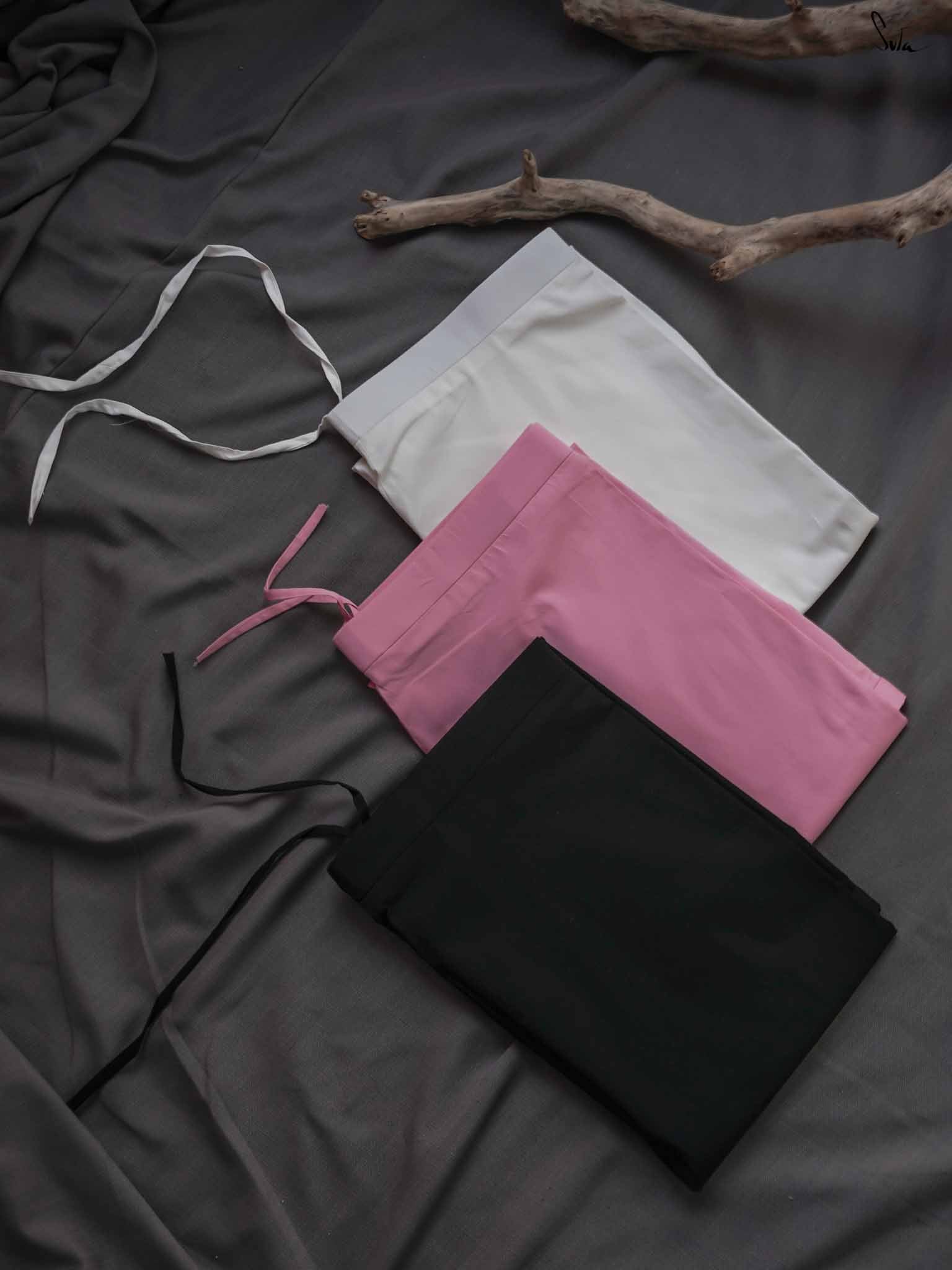 A beautiful trio of 3 cotton-lycra underskirts in Blush, Off-White, and Onyx. The soft pink and neutral shades are paired with the deep, dark Onyx for a modern, elegant look. This set is perfect for anyone looking to add subtle but striking colors to their outfit.
