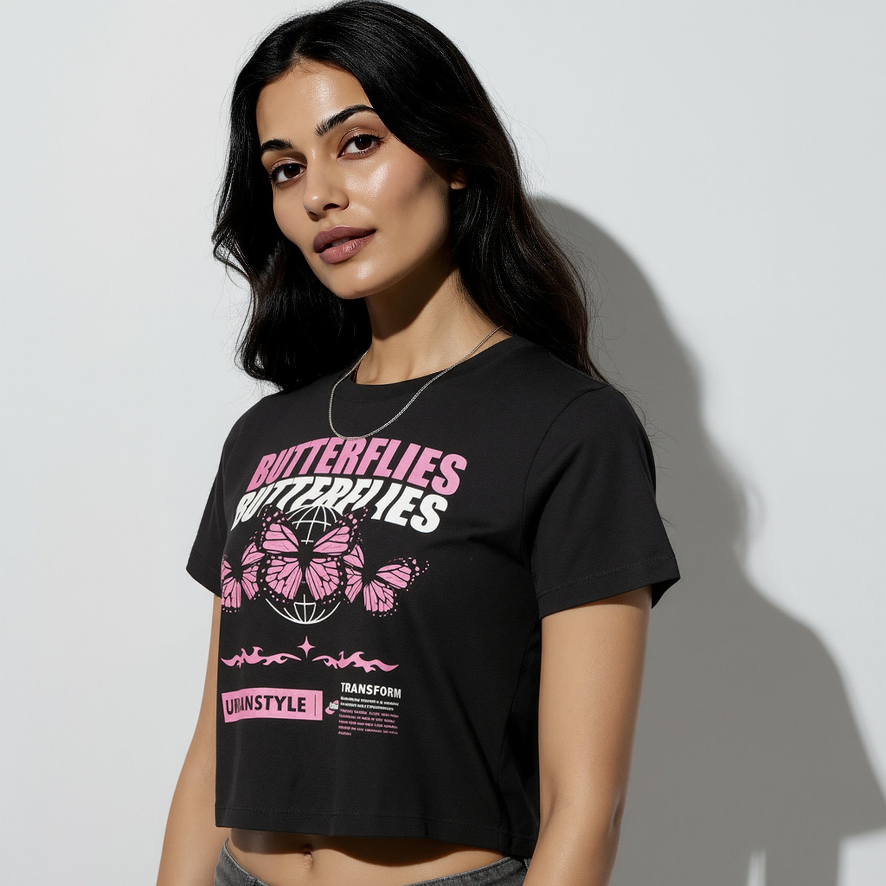 Experience the perfect blend of style and comfort with our Cotton Graphic Crop T-Shirt. Crafted from 100% cotton, this t-shirt offers a soft, breathable feel that keeps you comfortable all day long. The modern, stylish design with a graphic pattern adds a touch of personality to your wardrobe, making it a versatile piece for any casual occasion. Whether you're heading out for a day with friends or enjoying a relaxed weekend at home, this crop t-shirt is your go-to choice for effortless style.