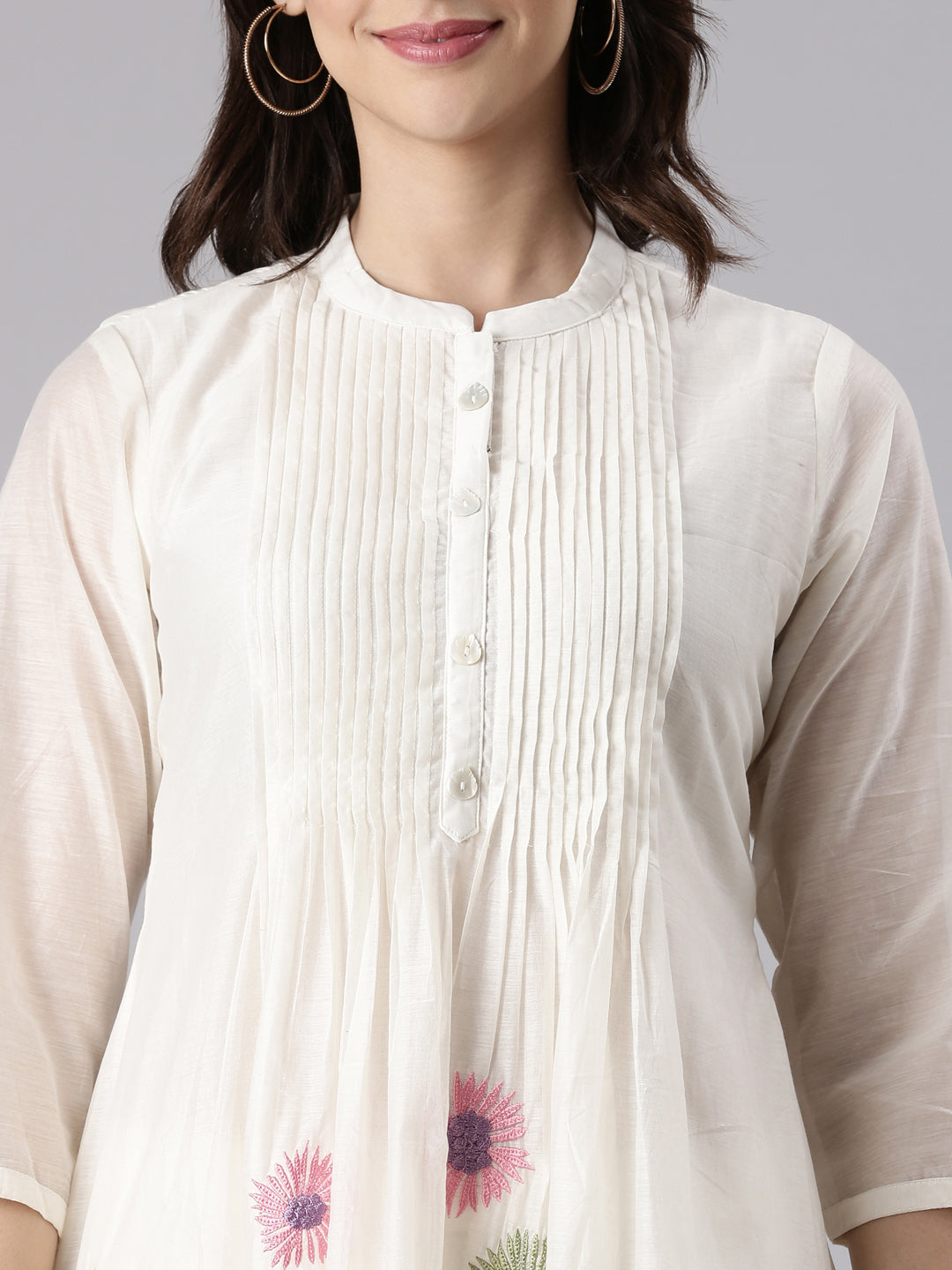 Cream Chanderi Embroidery Three Piece Set