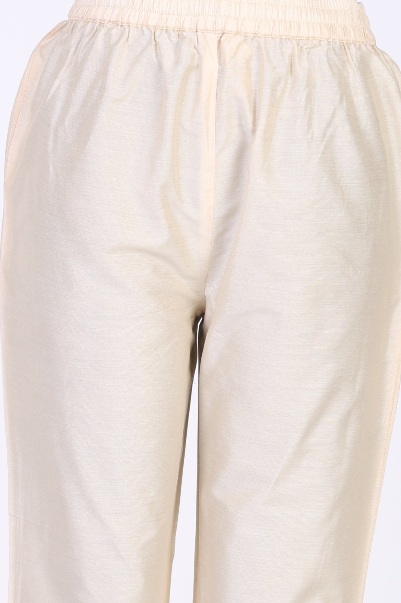 Cream Embroidered Floral Printed Chanderi A-line Kurta with Straight Pants and Dupatta Set