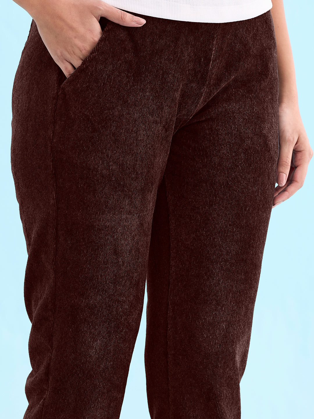 Dark Wine Cotton Polyester Corduroy Jeggings