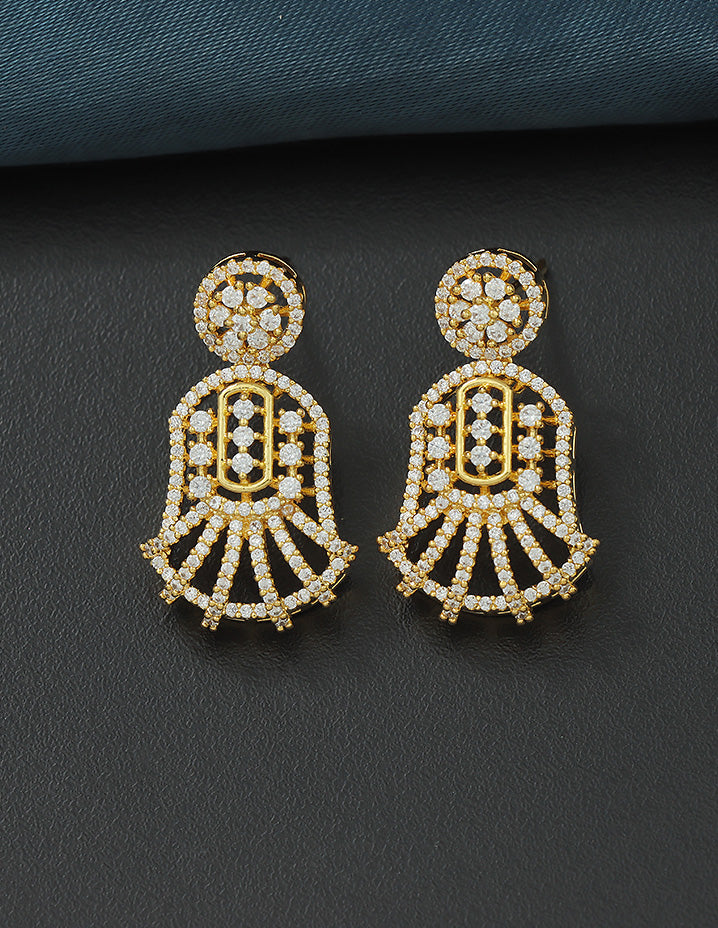A radiant Gold-toned necklace and earring set adorned with sparkling Bud and floral motifs, perfectly blending elegance and charm for your special occasions.