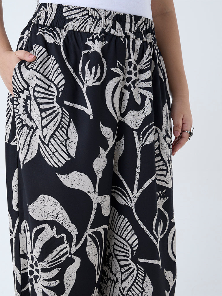 Infuse your wardrobe with nature-inspired flair through these black ethnic pants from Diza. Adorned with foliage motifs, this lightweight pair is crafted for comfort with a smooth elastic waistband and side pockets for added utility.