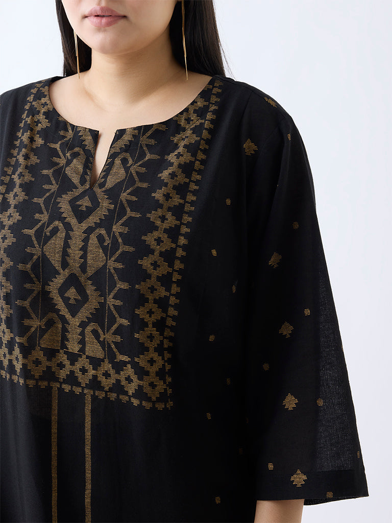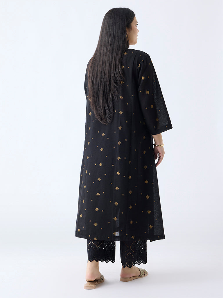 This striking black kurta from Diza adds a touch of boldness to your festive wardrobe. The stylish motifs across front and back creates a minimalistic but striking look, while the straight cut gives it a flattering, contemporary edge.