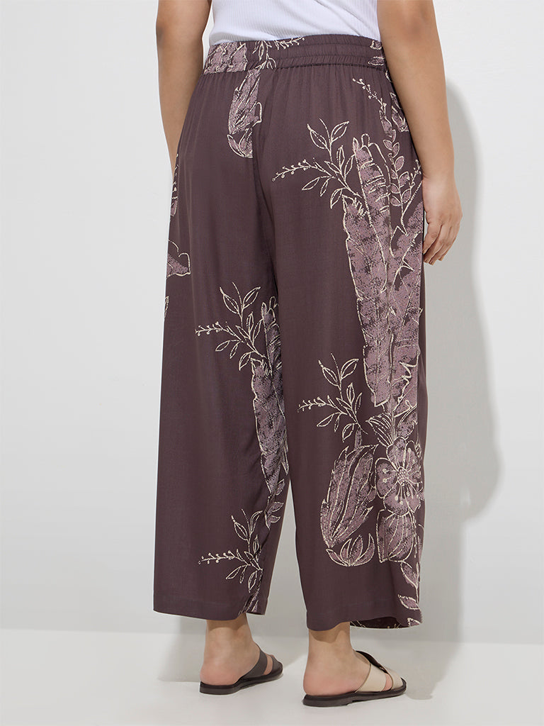 Diza Dark Brown Foliage Design Ethnic Pants