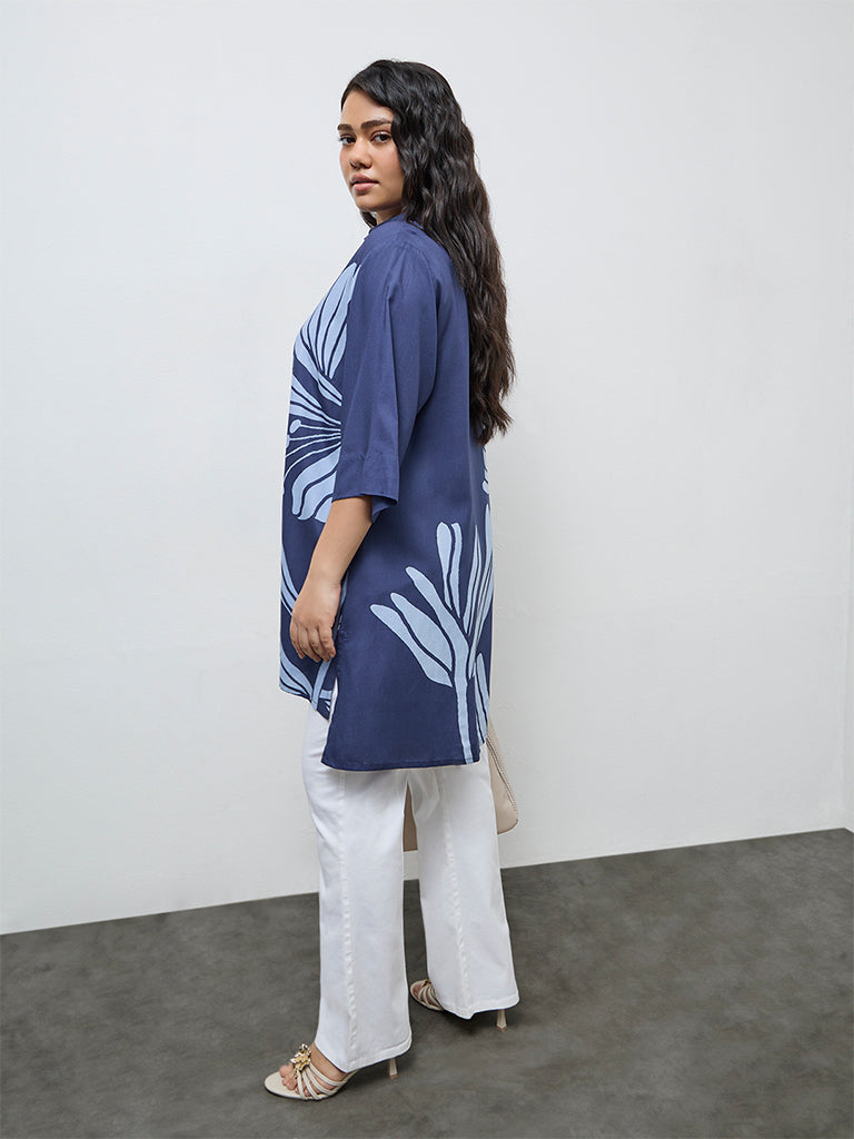 This navy tunic from Diza serves as a polished pick for your day-to-day rotation. Exhibiting vivid floral prints, it is designed in an A-line silhouette, carrying a collared and three-quarter sleeves. The breathable fabric construction provides sumptuous comfort, ideal for casual, summer day-outs.