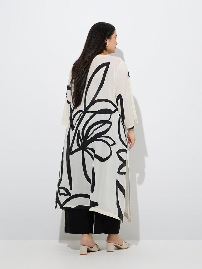 Diza Off-White Abstract Patterned A-Line Kurta