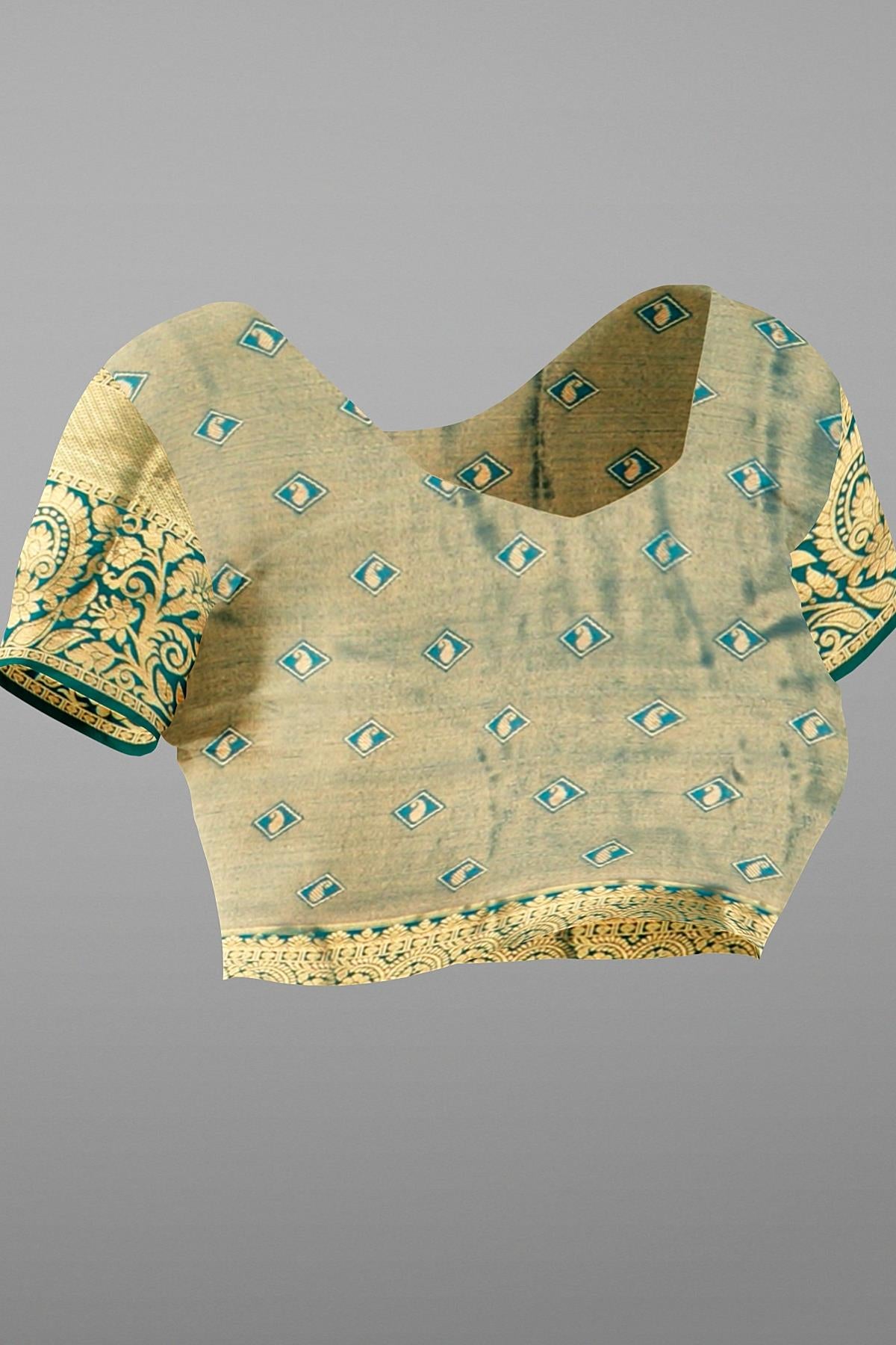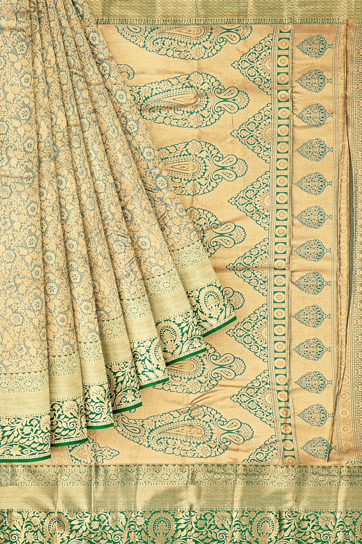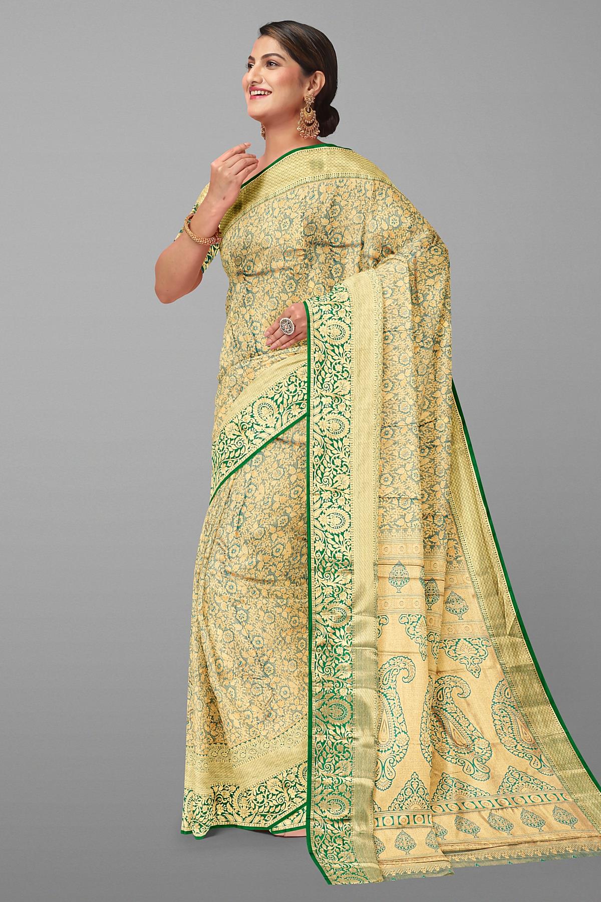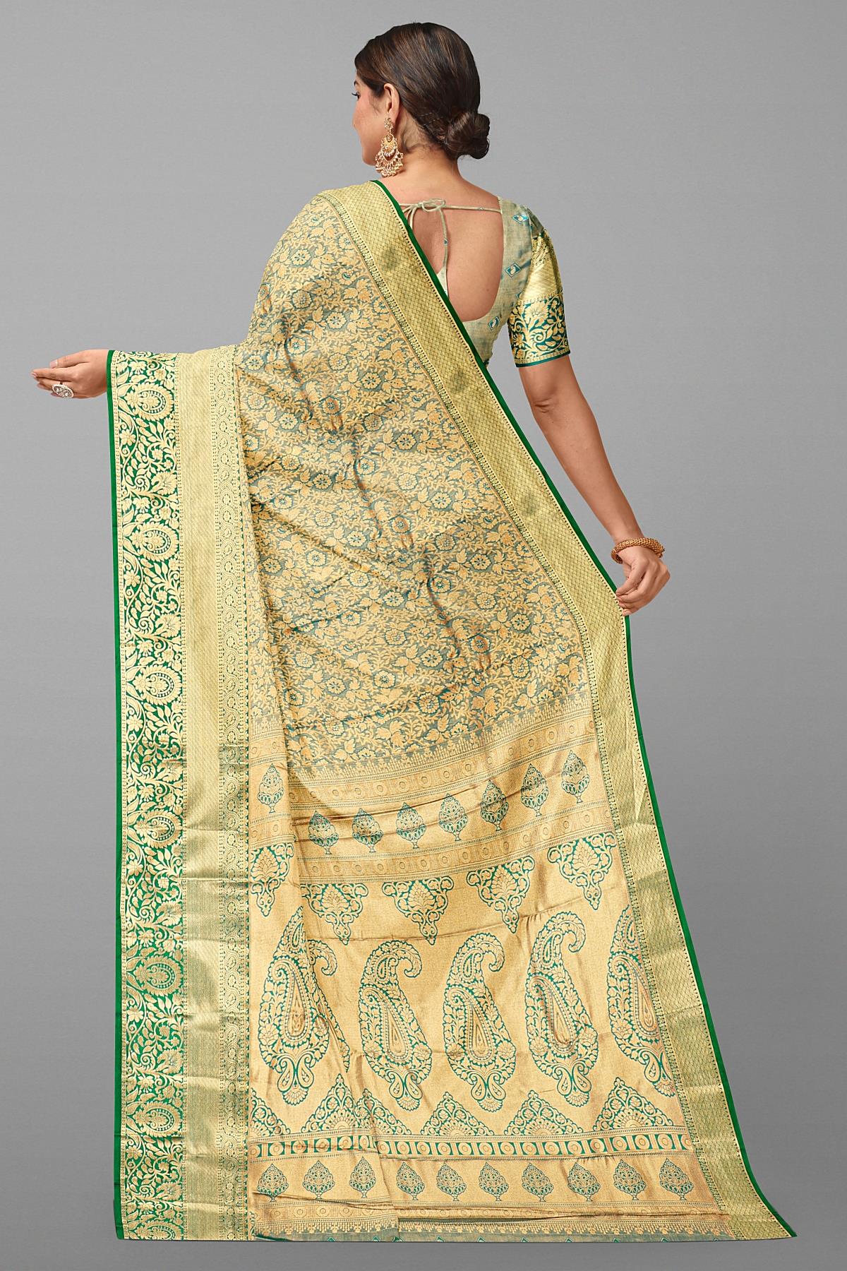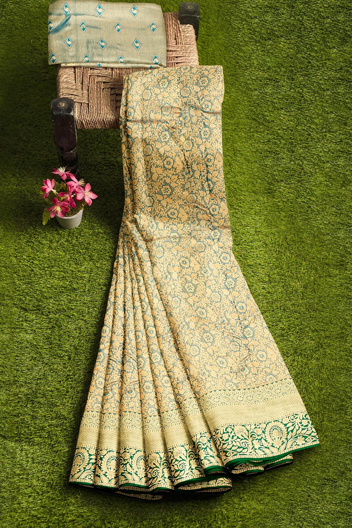 DUAL SHADE and GREEN FLORAL JAAL TISSUE SILK Saree with SEMI PATTU