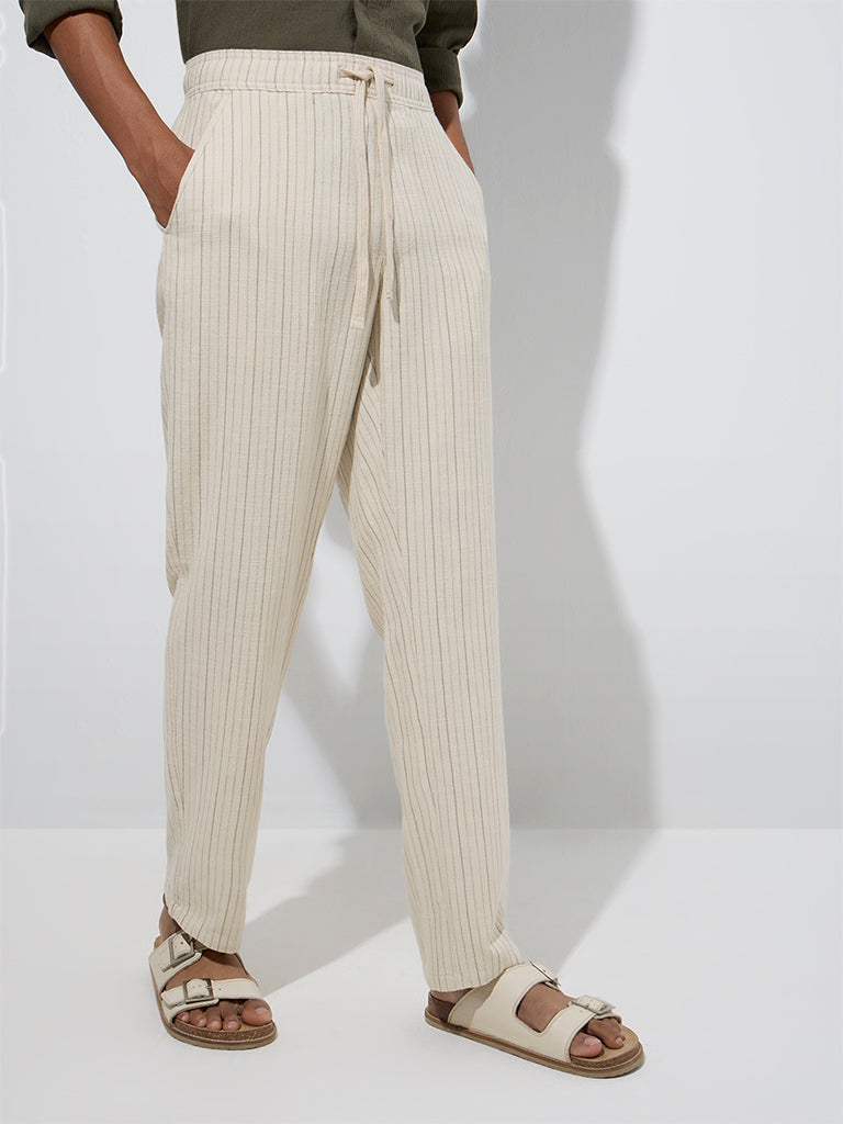 ETA Beige Striped Relaxed-Fit Mid-Rise Cotton Chinos
