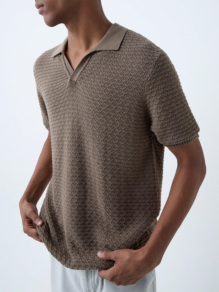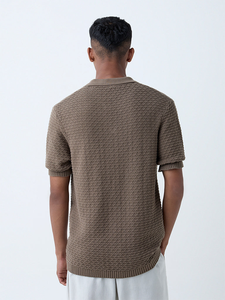 ETA Brown Knit-Textured Relaxed-Fit Cotton Polo T-Shirt