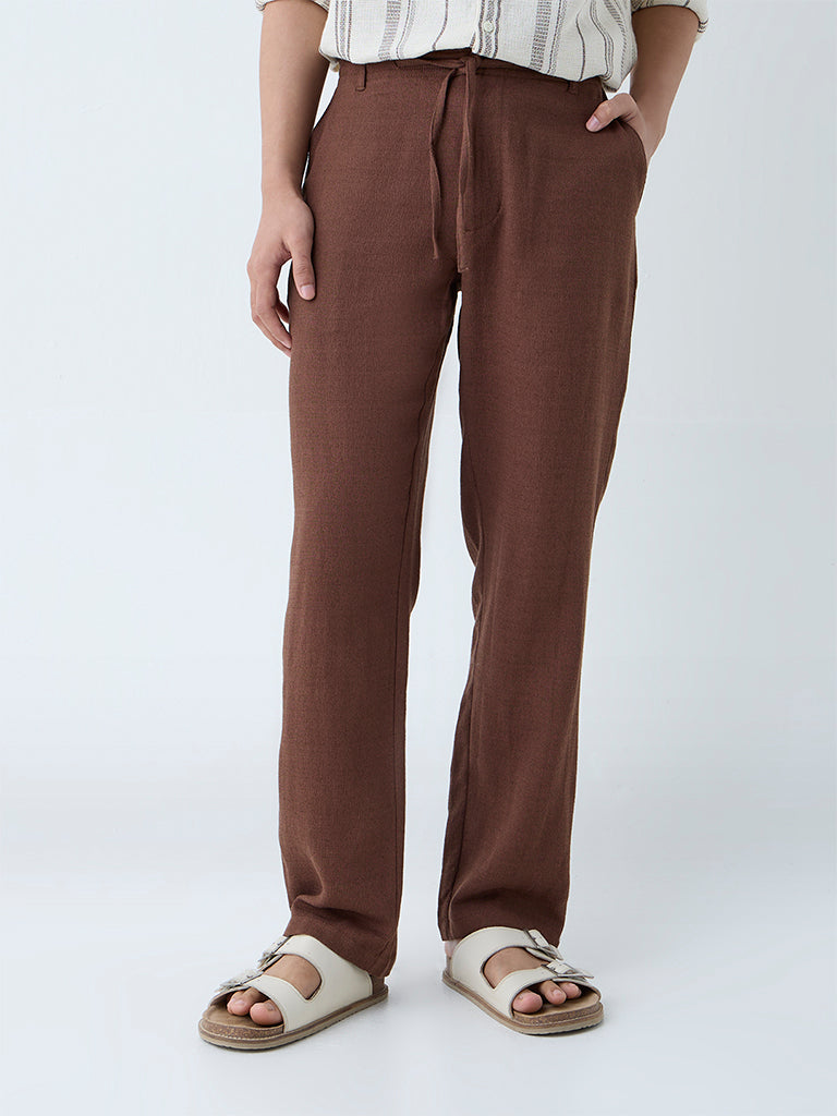 ETA Brown Solid Relaxed-Fit Mid-Rise Cotton Chinos