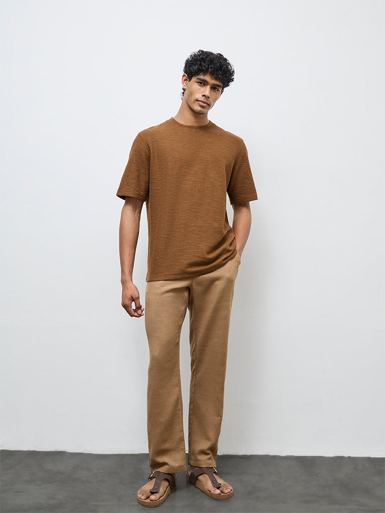 ETA Brown Textured Relaxed-Fit Cotton-Blend T-Shirt
