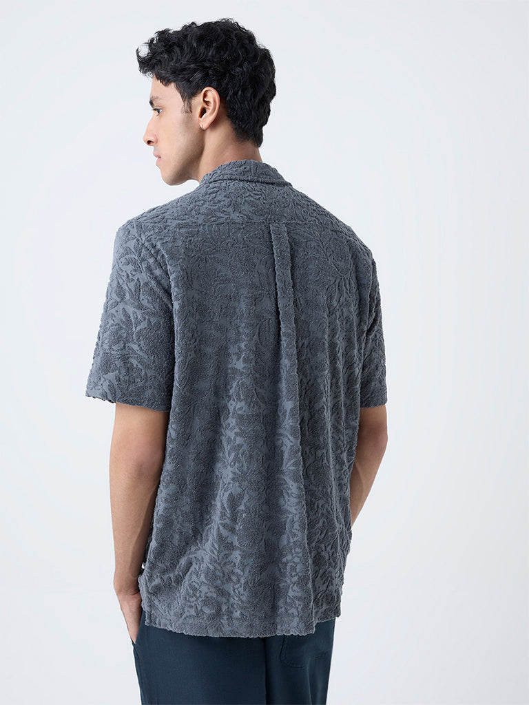 ETA Grey Floral Textured Relaxed-Fit Cotton-Blend Shirt