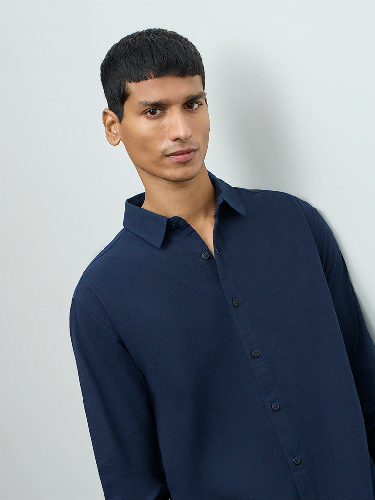ETA launches this navy shirt designed for effortless daily wear. Crafted from a cotton-rich fabric, it offers a soft, breathable feel for lasting comfort. Shaped in a relaxed silhouette, it is finished with a spread collar, full-length sleeves and a classic button-up front.