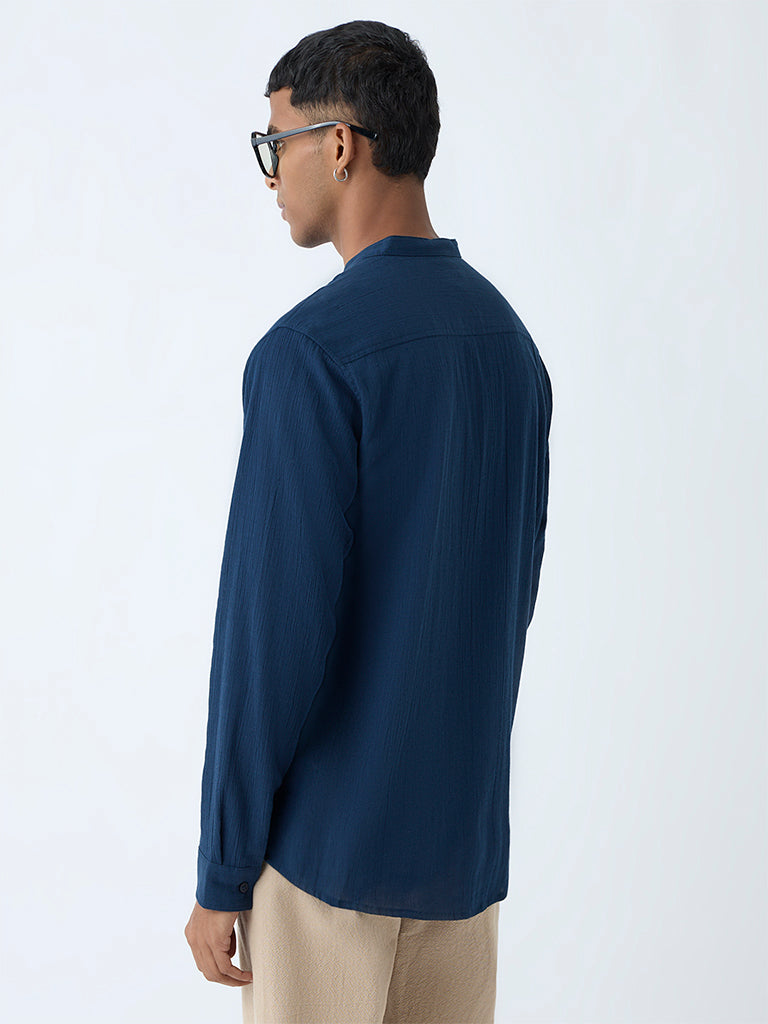 ETA Navy Solid Relaxed-Fit Cotton Shirt
