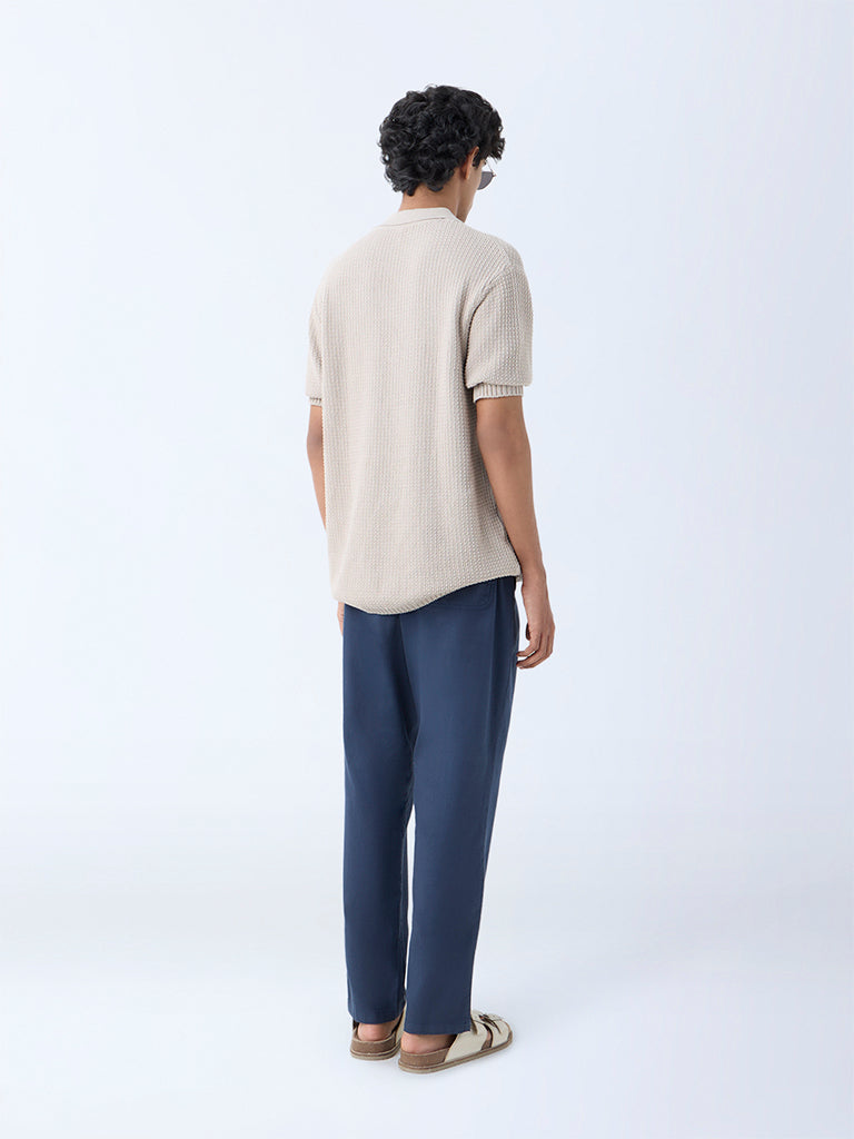 ETA Navy Solid Relaxed-Fit Mid-Rise Cotton Chinos