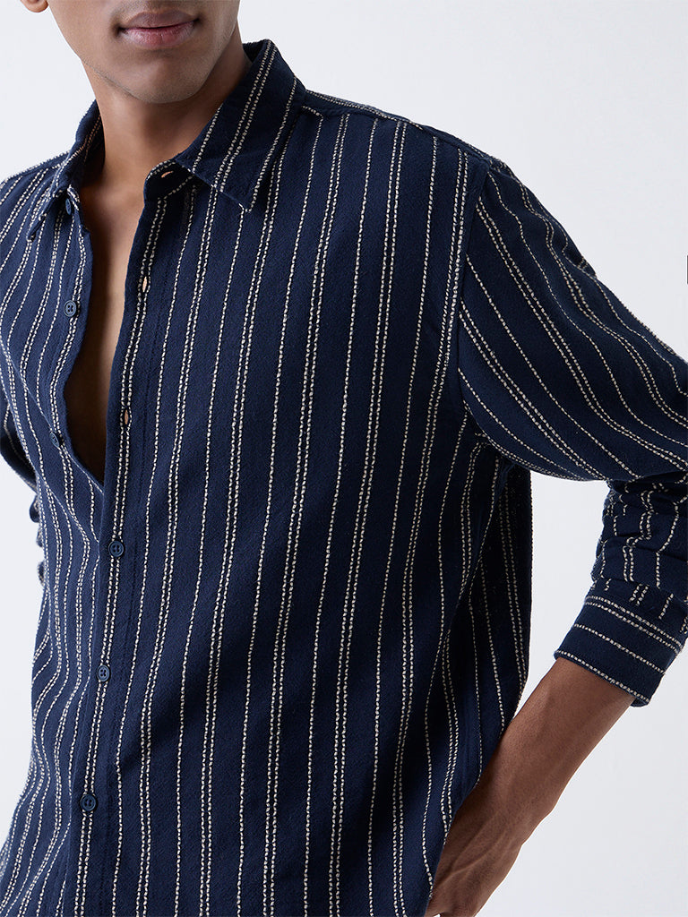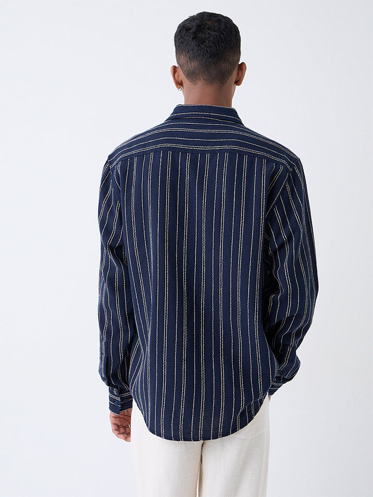 ETA Navy Striped Relaxed-Fit Cotton Shirt