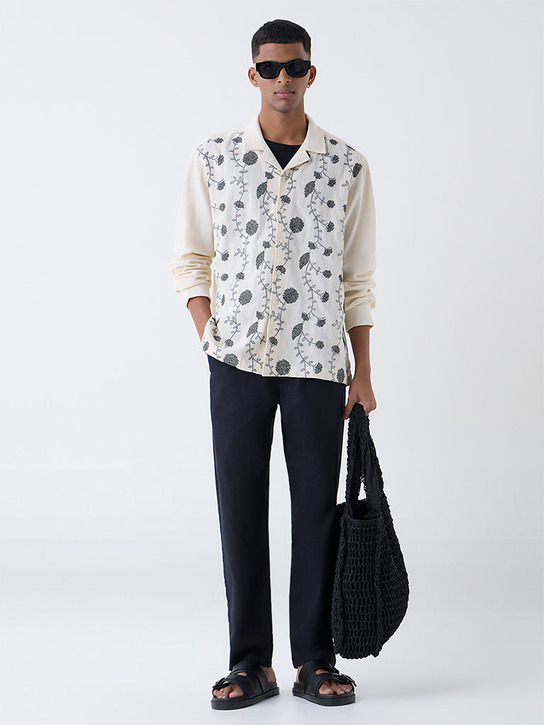 Bringing a statement edge to everyday wear, this off-white shirt from ETA showcases distinct floral embroidery that moves across the relaxed frame. The cotton-rich fabric lends a breathable, easy drape for day-long comfort. A notch collar, full sleeves, and a button-up front keep the structure familiar while the pattern adds gentle individuality.