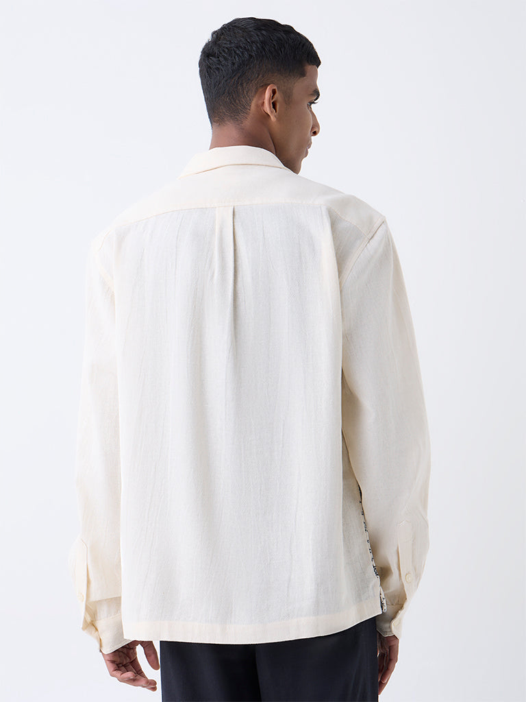 ETA Off-White Floral Embroidered Relaxed-Fit Cotton Shirt