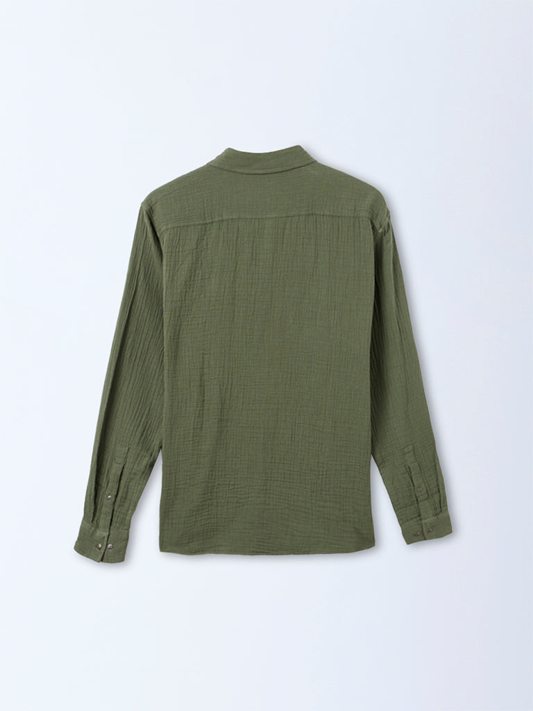 ETA Olive Crinkle-Textured Relaxed-Fit Cotton Shirt