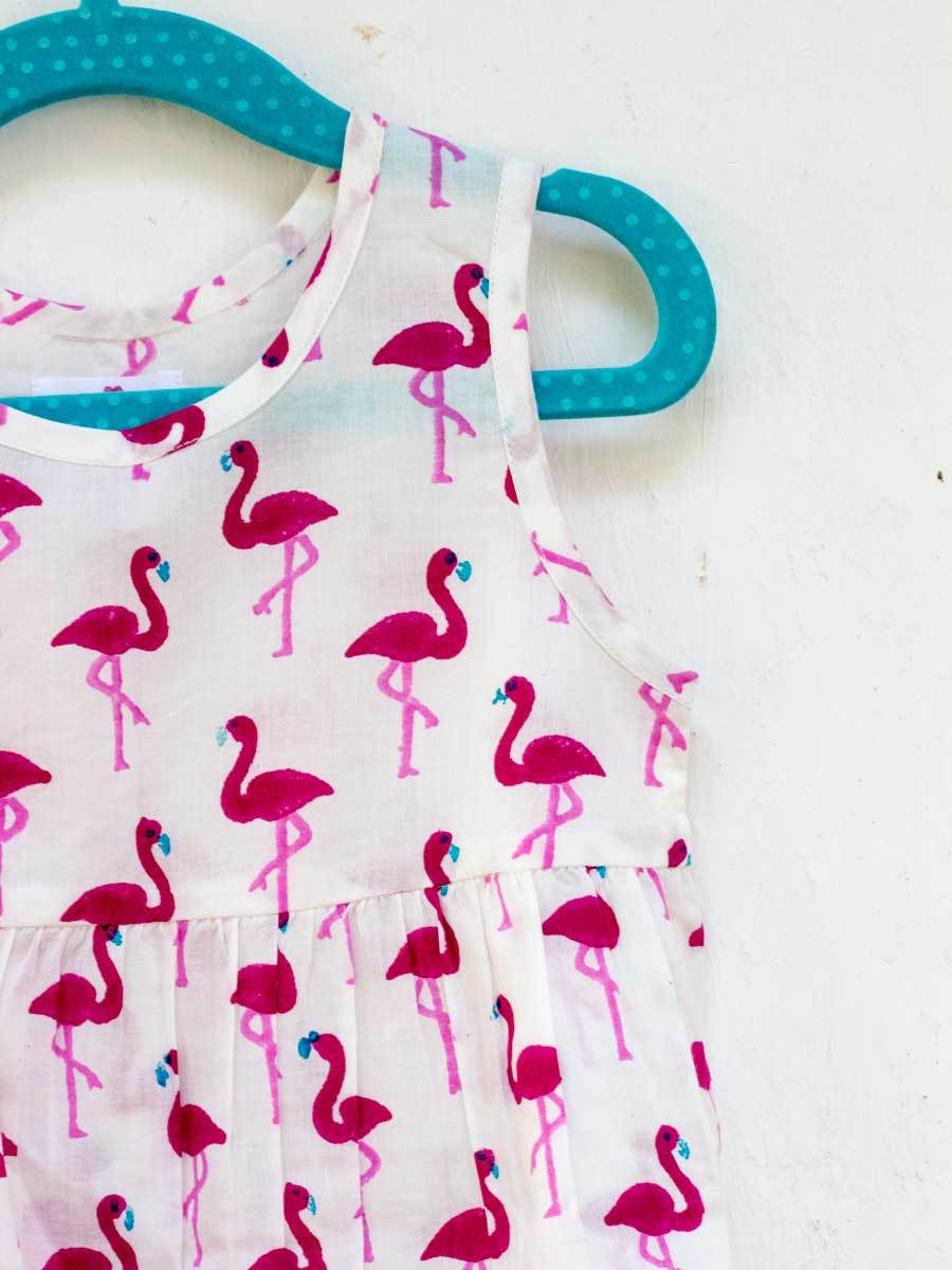Flamingo Everyday Organic Cotton Block Printed Dress with a Pocket