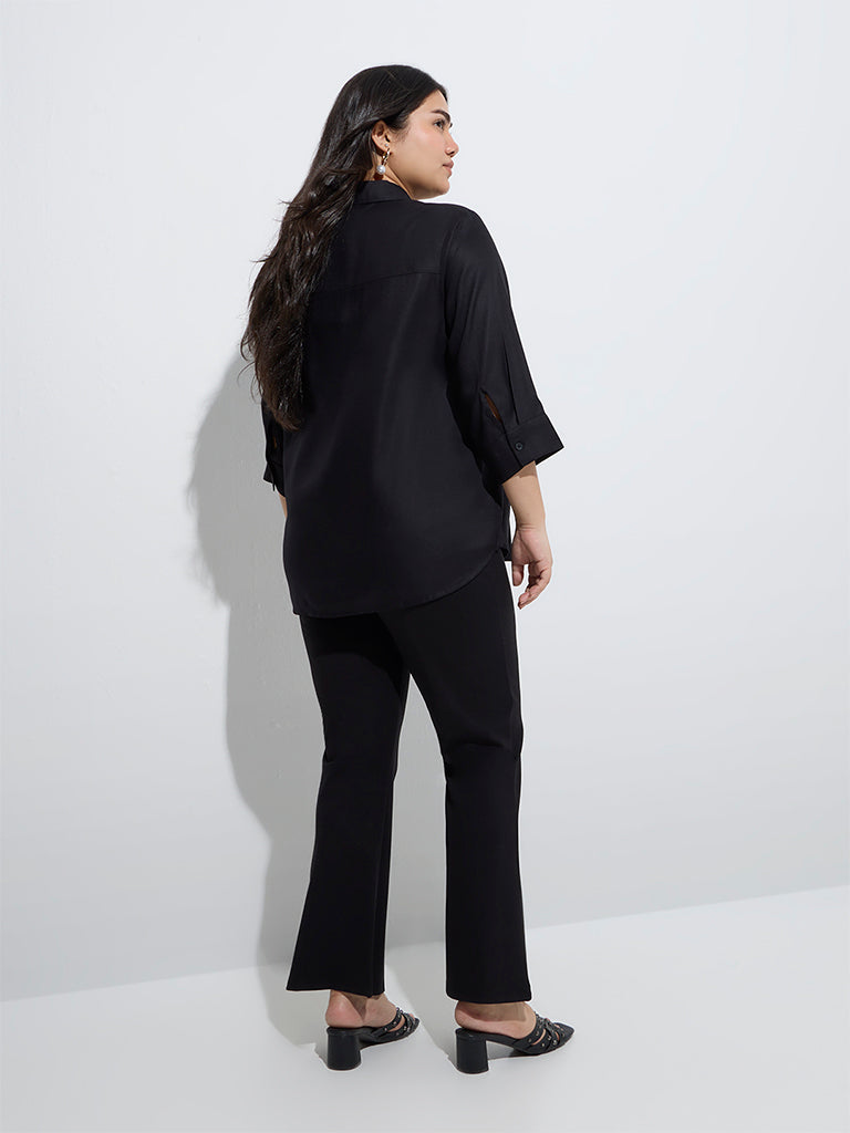 Spun from a lightweight fabric, this black shirt from Gia showcases intricate embroidery at the front for a touch of elegance. It’s styled with a spread collar, a button placket, and three-quarter sleeves.