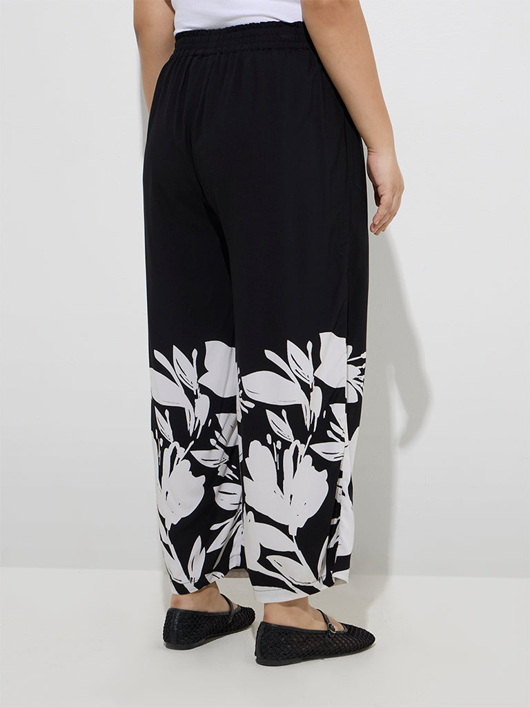 Gia Black Floral Design Mid-Rise Pants