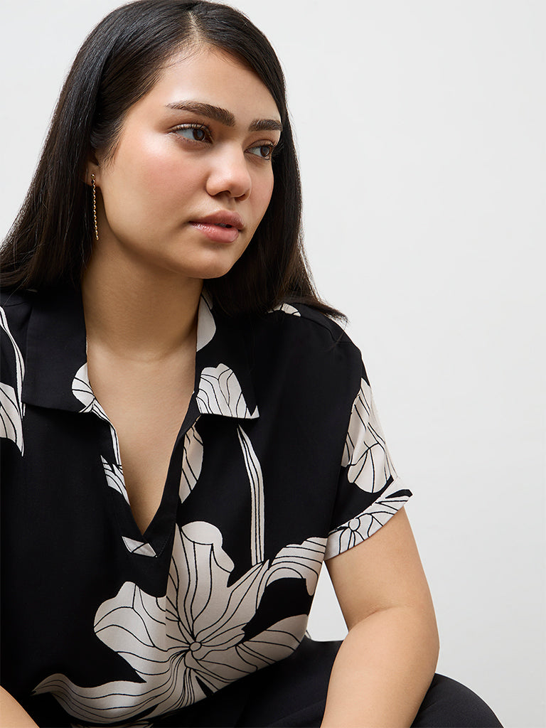 Gia Black Floral Printed Blouse