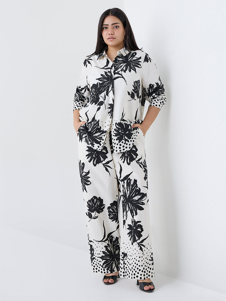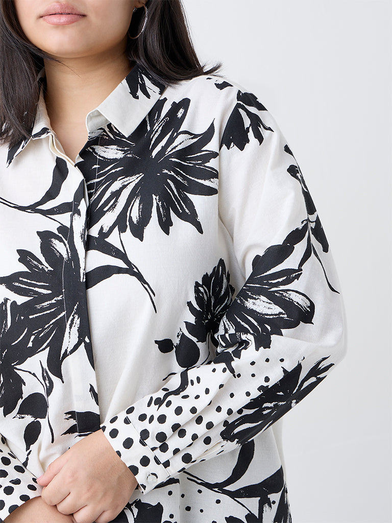 Gia presents this black and cream shirt enriched with floral motifs. Made from a breathable fabric, It is styled with a classic collar and a concealed button placket for a sleek finish. Full sleeves with buttoned cuffs add structure, making it a versatile pick that moves easily from desk to dinner.
