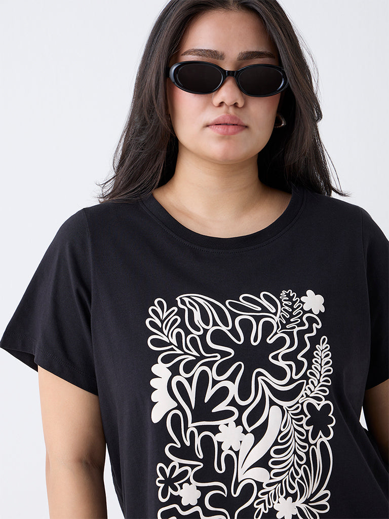 Gia Black Foliage Design Cotton T-Shirt