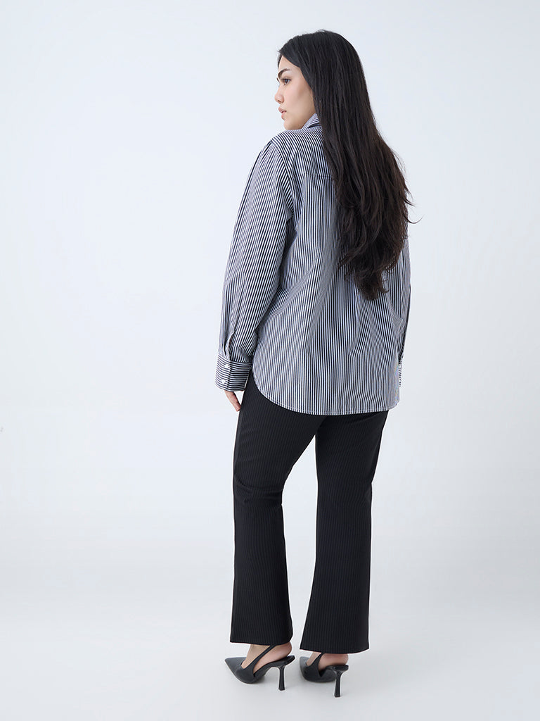 Gia Black Pinstriped Bootcut High-Rise Trousers