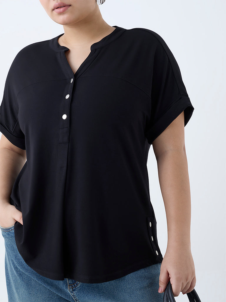 This black top from Gia is fashioned in a minimal profile that feels effortlessly modern. Spun from an ultra-lightweight fabric, it features a mandarin neckline with a brief button placket, while upturned dolman sleeves lend a sophisticated finish.