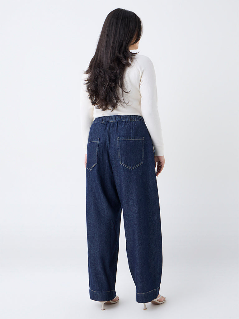 Designed with everyday ease in mind, these dark blue jeans by Gia are shaped in a straight-leg silhouette that feels relaxed yet flattering. Made from pure cotton for breathable comfort, they feature an elasticated drawstring waistband that adapts to your shape throughout the day. Side pockets add practical utility, making them a go-to pair for women who love denim that moves with them.