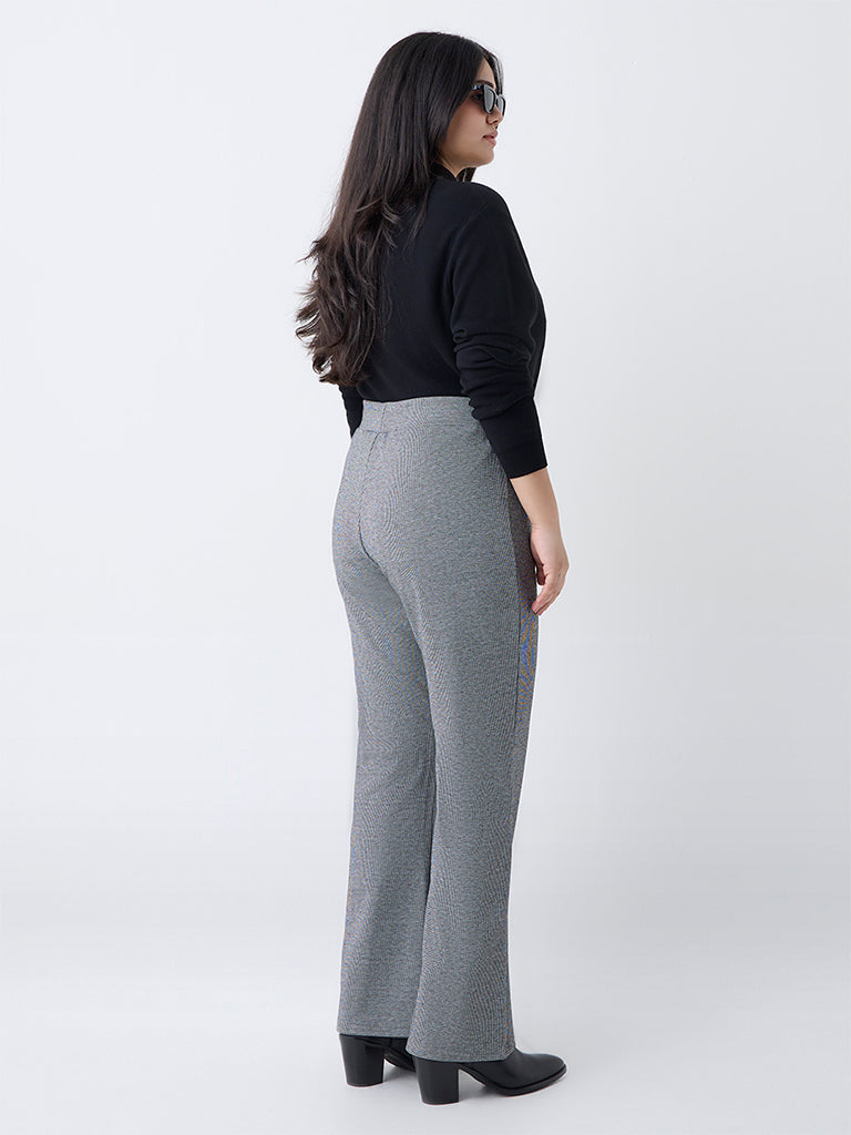 Gia Grey Checkered High-Rise Bootcut Trousers