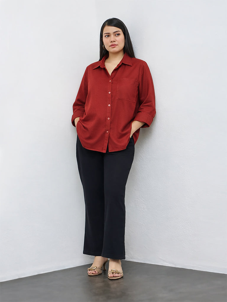Bring understated elegance to your wardrobe with this rust Shirt from Gia. Designed with a classic collar, a button-up front and 3/4th sleeves, it offers a clean and refined silhouette. A chest pocket adds a subtle functional detail to the design. The lightweight fabric ensures comfort for all-day wear.