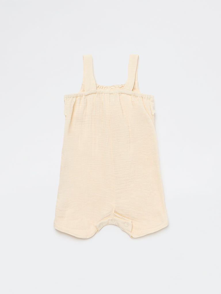 HOP Baby Girls Beige Schiffli Detailed Cotton Romper