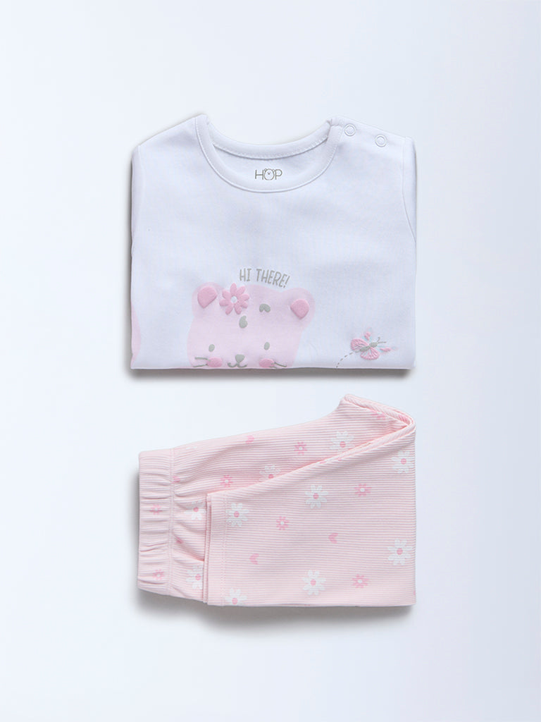 HOP Baby Light Pink Cat Printed Cotton T-Shirt and Pants Set - Exclusive