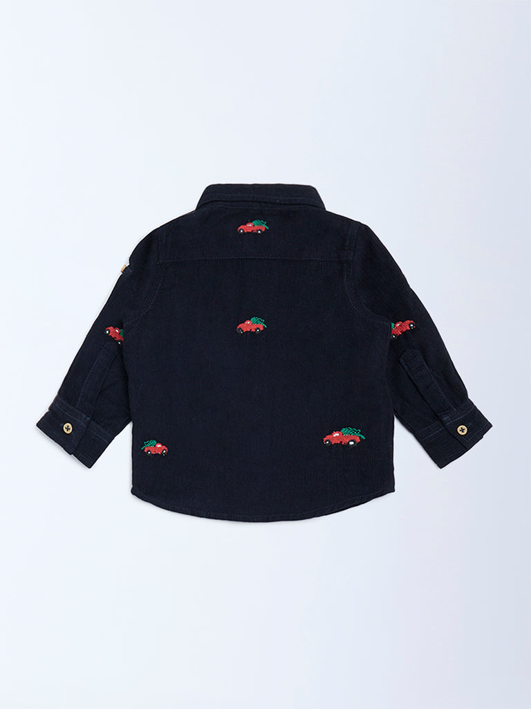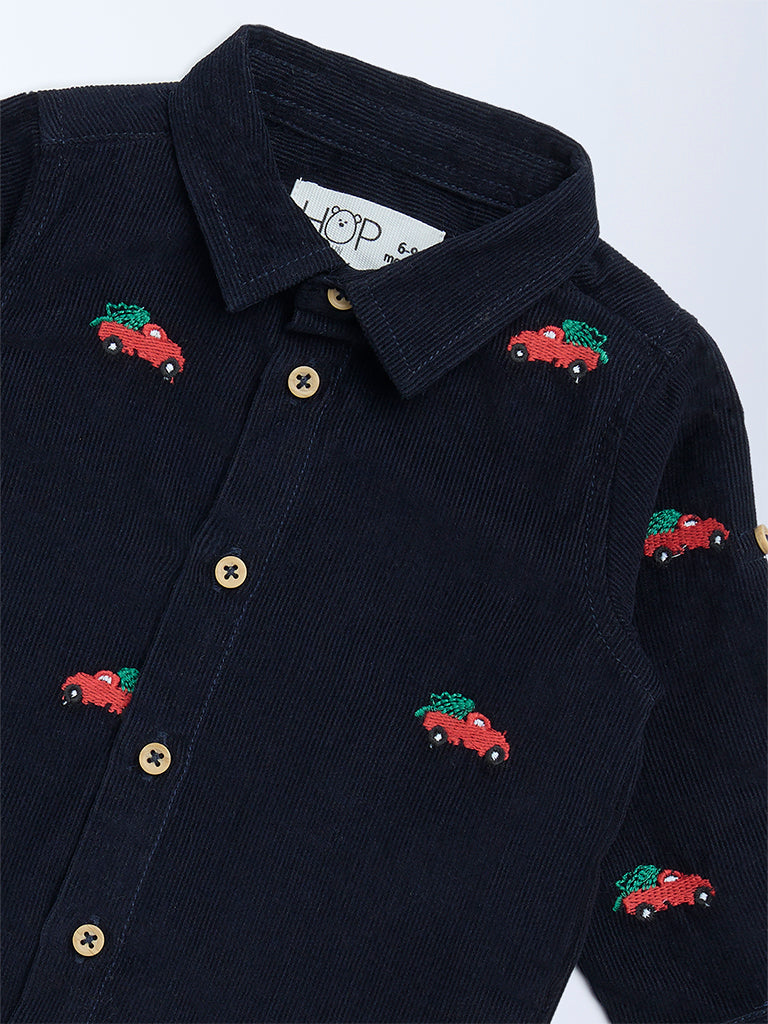 HOP Baby Navy Embroidered Corduroy Shirt